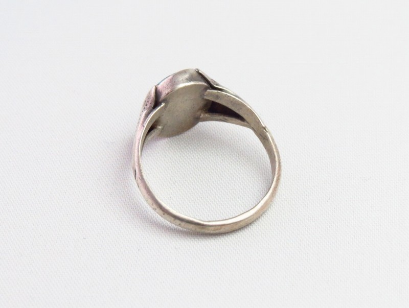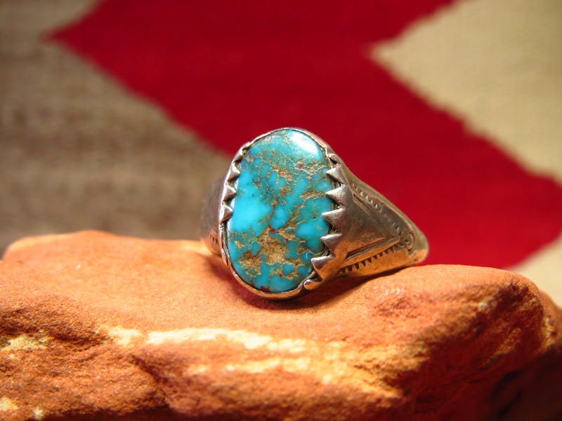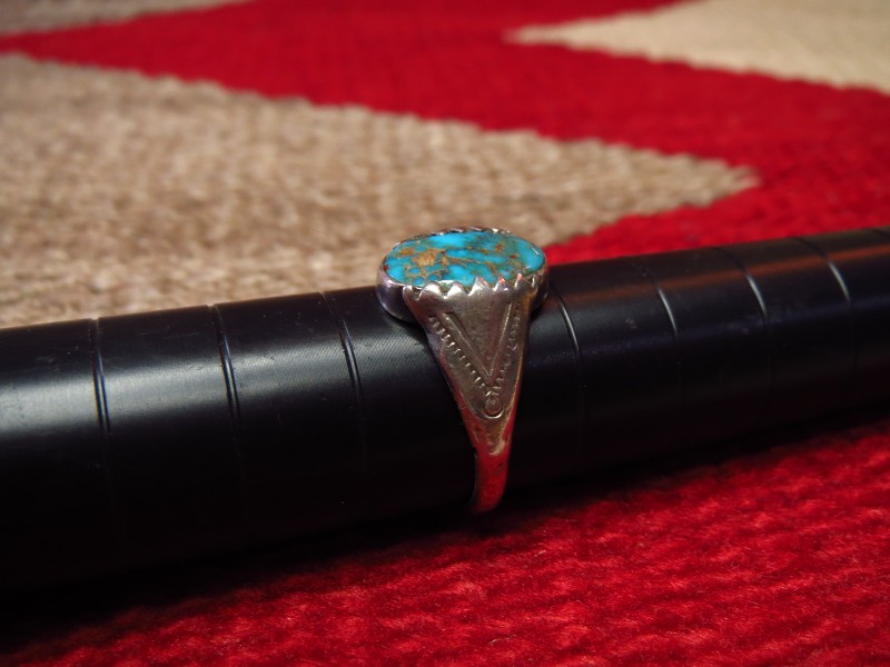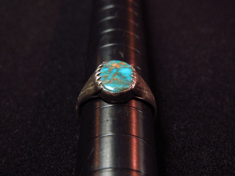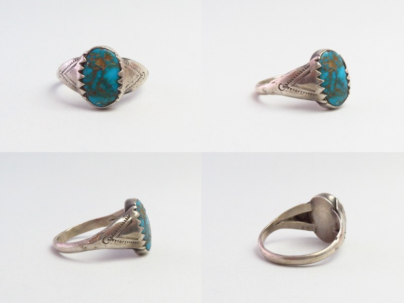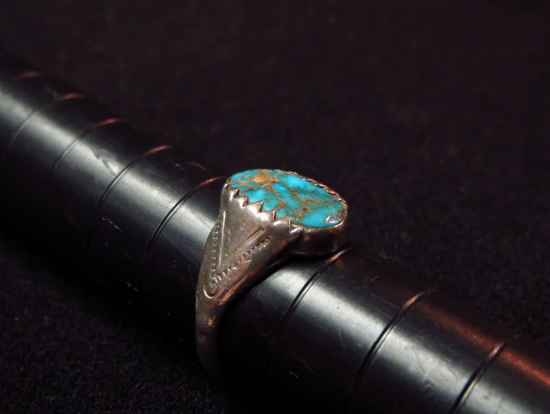1930年代末~1940年代頃に制作されたと思われる作品で、小さなサイズのリングですが、迫力のある立体的なシェイプとナバホ特有の素朴で武骨なシルバーワークによる造形はそれなりの存在感も感じさせます。