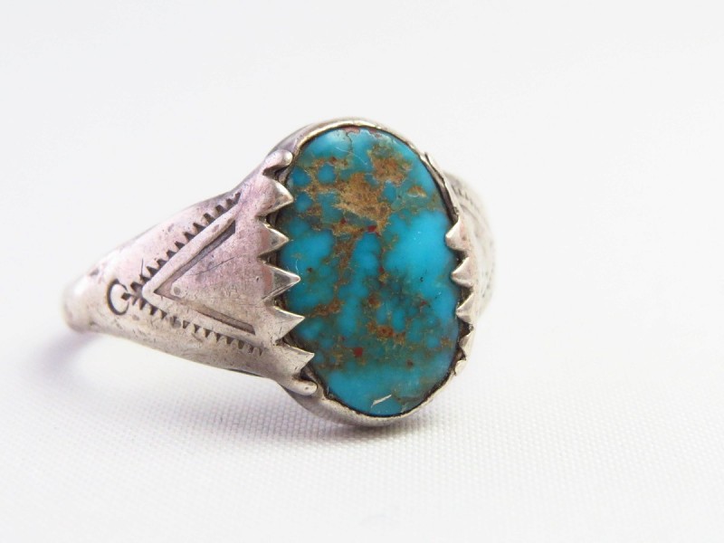 【NAVAJO】ナバホのアンティークジュエリー、素朴ながら高度なシルバーワークによって造形された作品で、ワイルドで美しいローンマウンテンターコイズがセットされたアンティーク/ビンテージリングです。