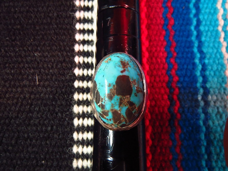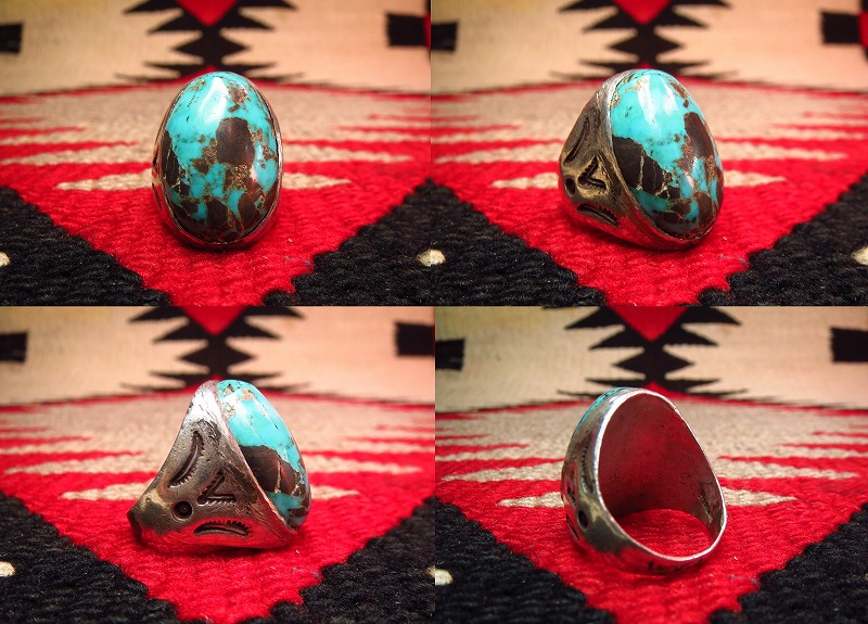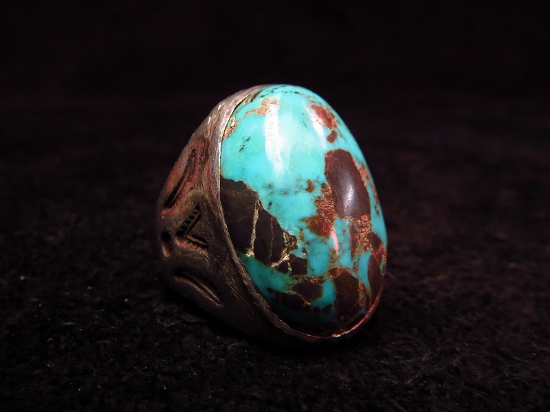 とても大きく、存在感のある造形にすごい迫力のターコイズがセットされますので男性の手にも良く映えるピースです。