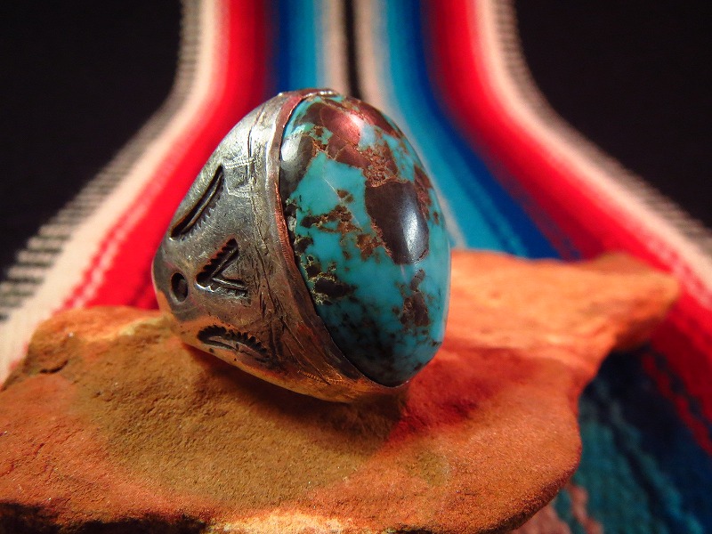 フレッド・ハービースタイルの作品で、素晴らしいターコイズがセットされたリングです。1940年代~60年代頃に作られた、アルバカーキの工房【BELL】の作品と思われます。