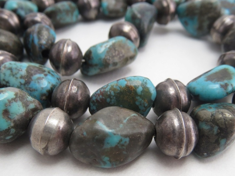 【NAVAJO】ナバホのビンテージジュエリー、美しいターコイズビーズとシルバービーズで構成されたシングルストランドビンテージビーズネックレスです。
