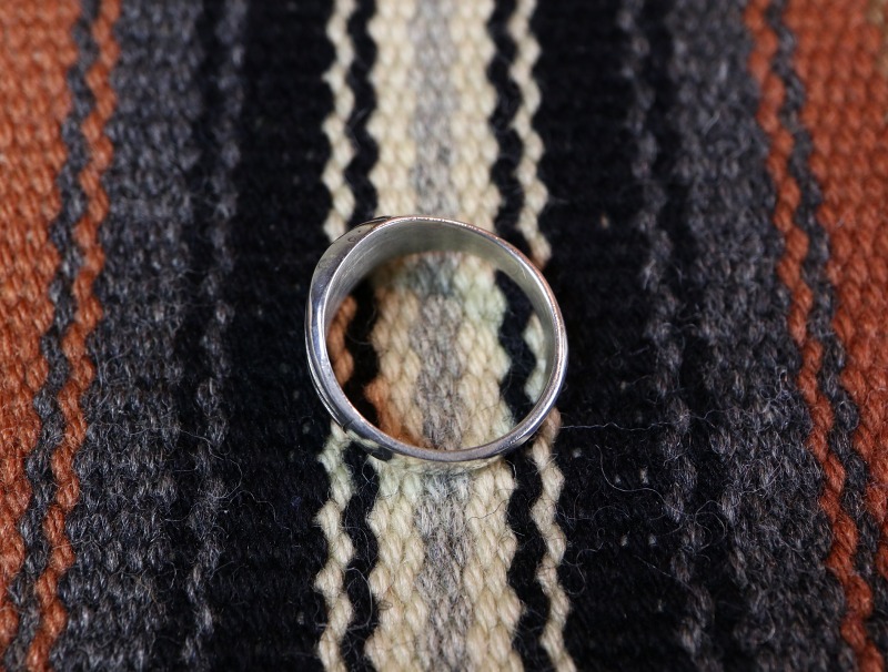 類似した造形スタイルを持つリングは1950年代以前から見られ、ナバホの伝統的なスタイルを持った作品ですが、こちらのピースについては1960年代末頃~1970年代初頭頃に上記のDennis June/デニス・ジューン氏がナバホのシルバースミスにオーダーして制作したものです。