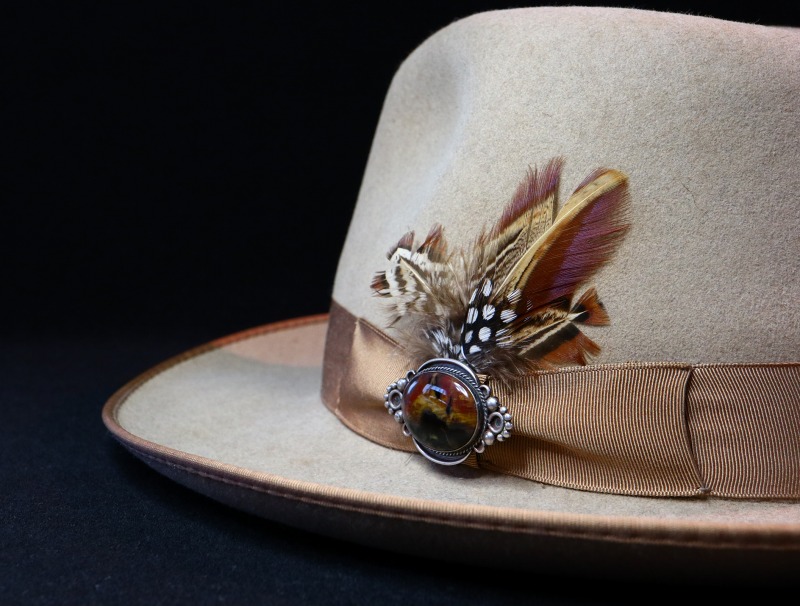 また、こちらのようなピンはアウターのアクセントととして、ラペルや襟等にもフィットしますし、ハット等のワンポイントにも使い勝手の良いアイテムです。