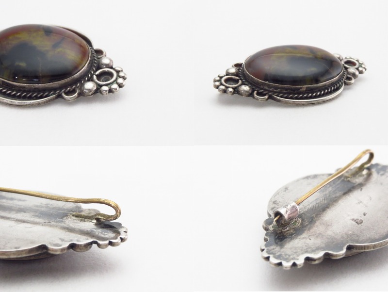 【NAVAJO】ナバホのアンティークジュエリーで、とても美しい【Petrifiedwood】ペトリファイドウッド(木の化石)がセットされたビンテージ/アンティークピンブローチです。