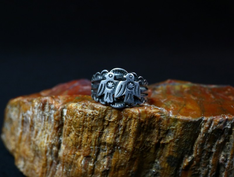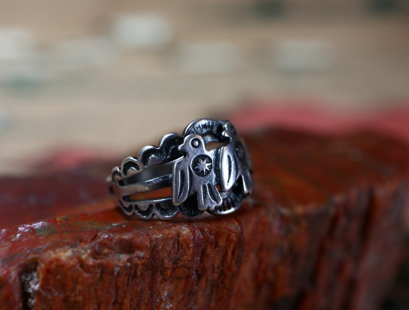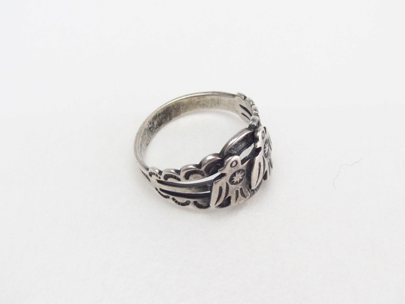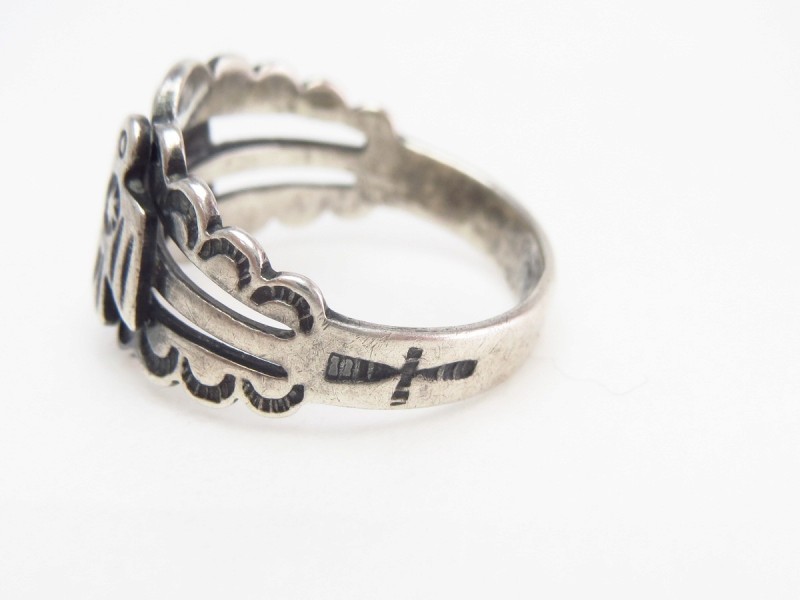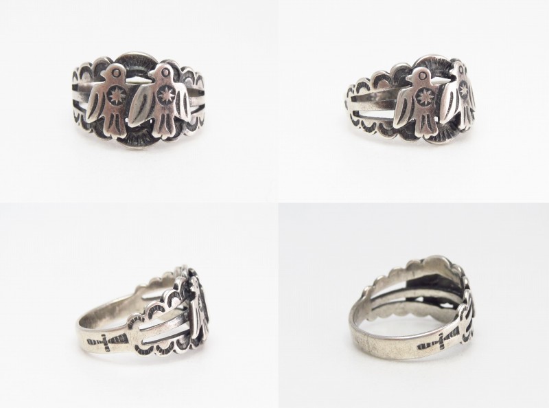 こちらの作品も1930年代後半~1940年代当時に作られたと思われ、ツーリストジュエリーやフレッド・ハービースタイルと呼ばれる観光客向けに作られたピースを代表するようなサンダーバードモチーフのリングです。