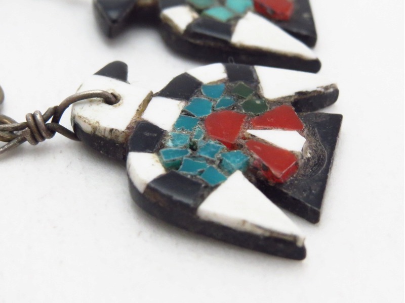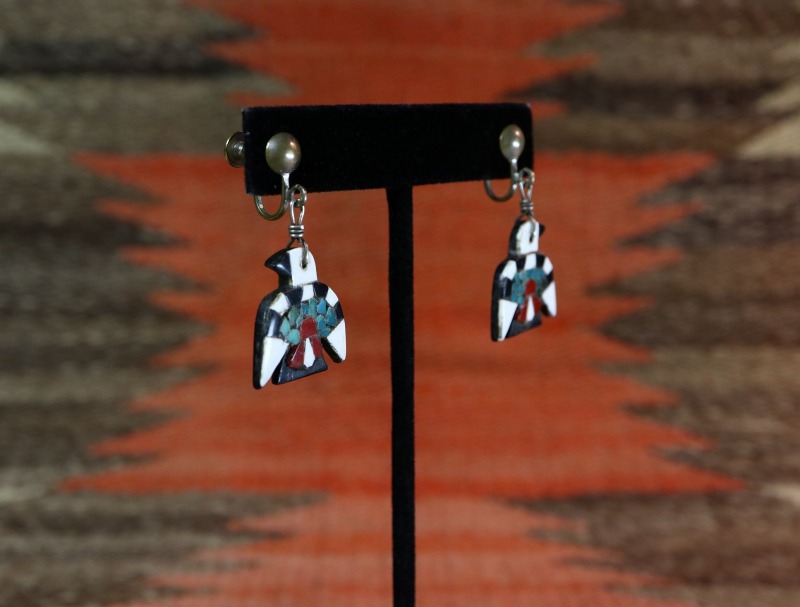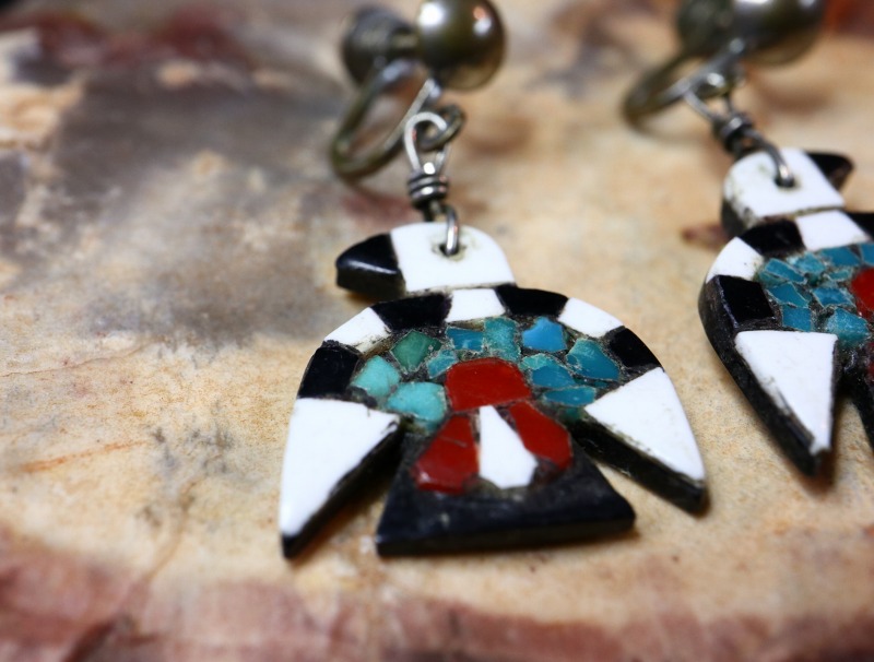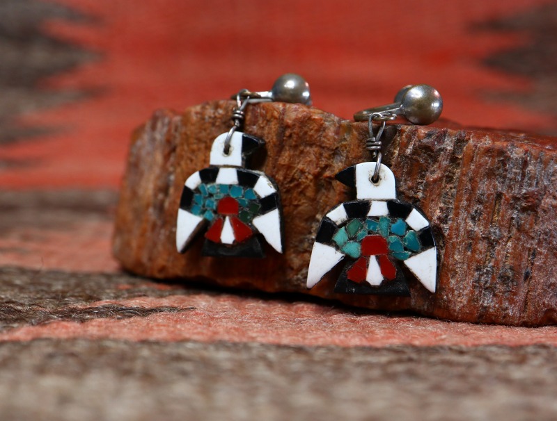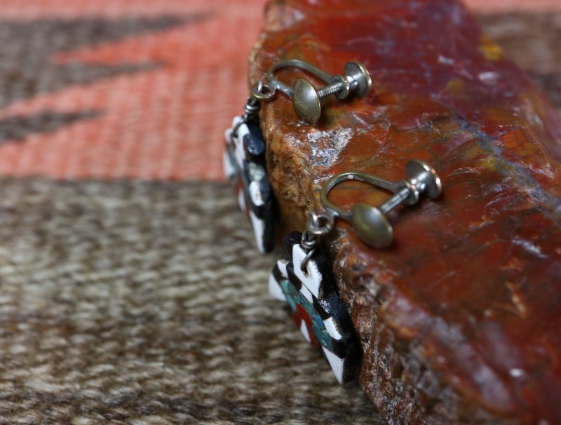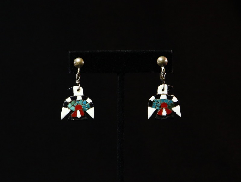 【Kewa】キワ/【Santo Domingo】サントドミンゴのアンティーク作品で、 通称【Battery Bird】バッテリーバードとも呼ばれる同部族の伝統的な工芸品の一つ。素朴で可愛い印象のサンダーバードが印象的なダングルタイプ(吊り下げ)のアンティーク/ビンテージイヤリングです
