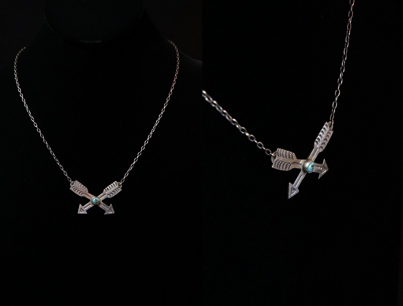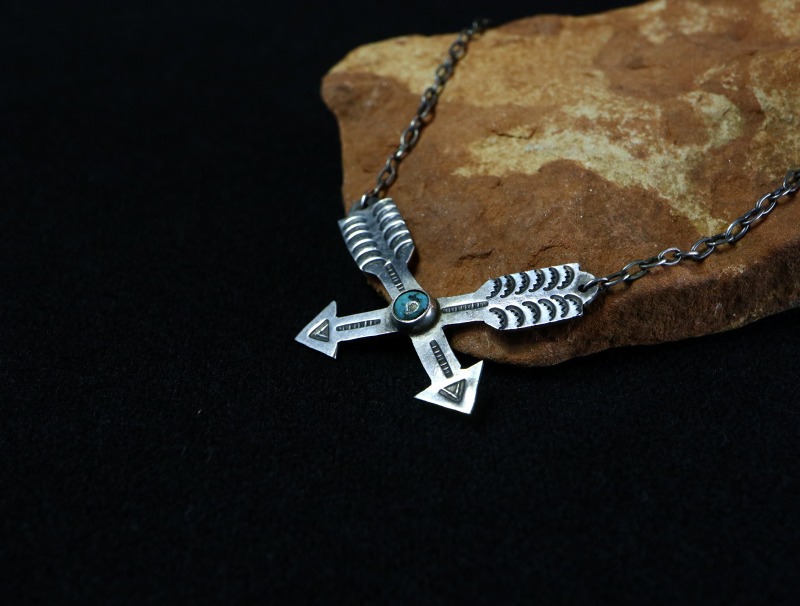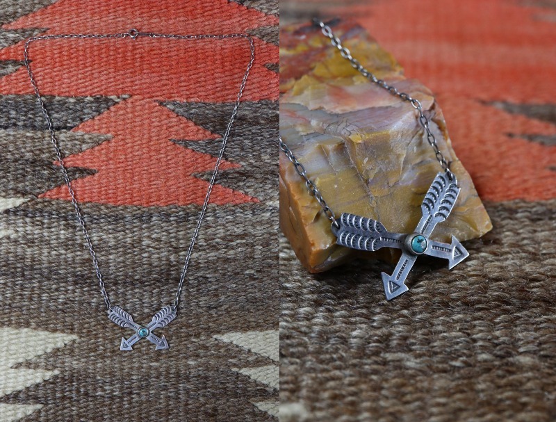 ナバホジュエリーらしいクロスアローズのモチーフは、『フレンドシップ/友情』を表し、シンプルで控えめなボリュームがとても使いやすい印象のネックレスです。