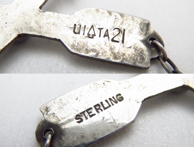 こちらの作品も1940年代~50年代前半に作られた作品で、内側のホールマーク【UITA21】の末尾に施された数字『21』から【Ganscraft】/【SOUTHWEST ARTS&CRAFTS】製であることを特定することができます。 UITAではそれぞれのトレーダー(ショップ)ごとにナンバーを割り振っており、いくつかのナンバーはそのトレーダーが判明していますが、UITAに関する資料はそのほとんどが焼失しており、いまだ不明となっているナンバーも多く存在しています。また、SOUTHWEST ARTS&CRAFTSのUITA参加は1946年頃とされていますが明確ではありません。