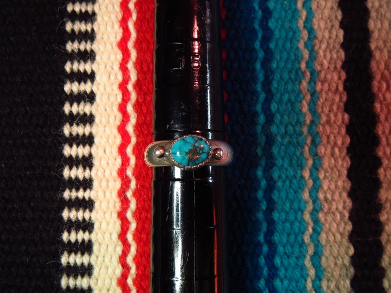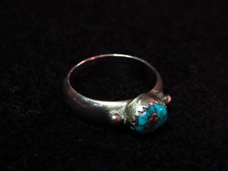 ナバホかプエブロの大変シンプルな作品で、とても美しいターコイズの印象的なOLDPAWN、ビンテージリングです。