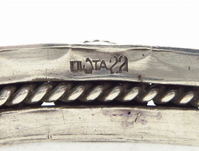 その作品群は多岐にわたり、プエブロの作品を想起させるシンプルなブレスレットから、ツーリストスタイルのピンブローチ等も多く見られます。また、多くのシルバースミスが所属していたと推測され、その作者を特定することは出来ませんが、本作の様に素晴らしいクオリティーを持つ作品が多く残されており、UITAの刻印が入ると云うことは、その製法や材料等について厳しい条件をクリアしていることを表しています。