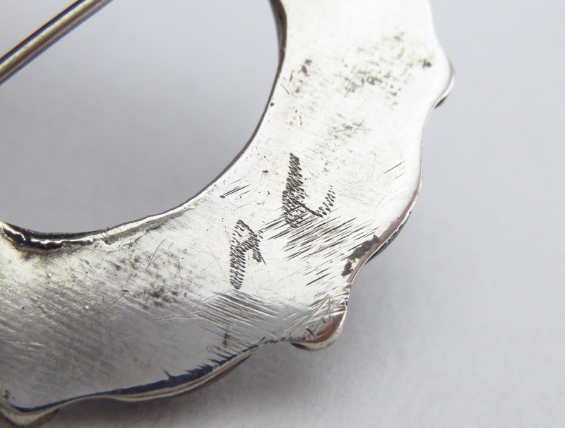 また、丸いドーナツ型は柔らかな印象を与え、女性に向いた雰囲気ですが男性にもフィットする渋い質感と構築的な表情も持ったピンブローチとなっています。
