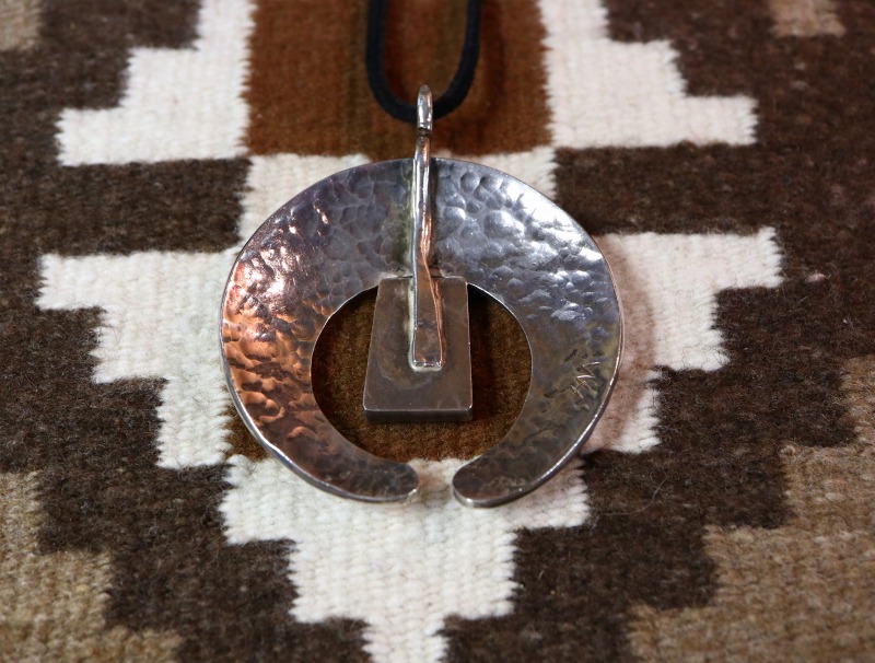裏側にはホールマークが確認でき、モチーフのデザイン/造形やシルバーワークの細部からは、ホピクラフトに所属していた【Stephen Hyson Naseyoma】スティーブン・ハイソン・ナセヨウマの作品と推測されますが、資料に残されている同作者のホールマークとは少し相違があり、正確な作者や制作された時期の特定は困難となっています。
