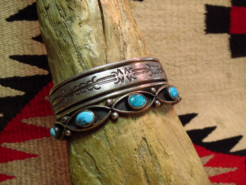 ナバホのアンティークジュエリー、1920年代~40年代前半ごろまでのフレッド・ハービースタイルの作品です。
