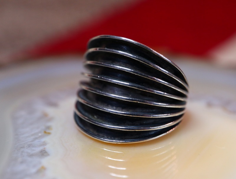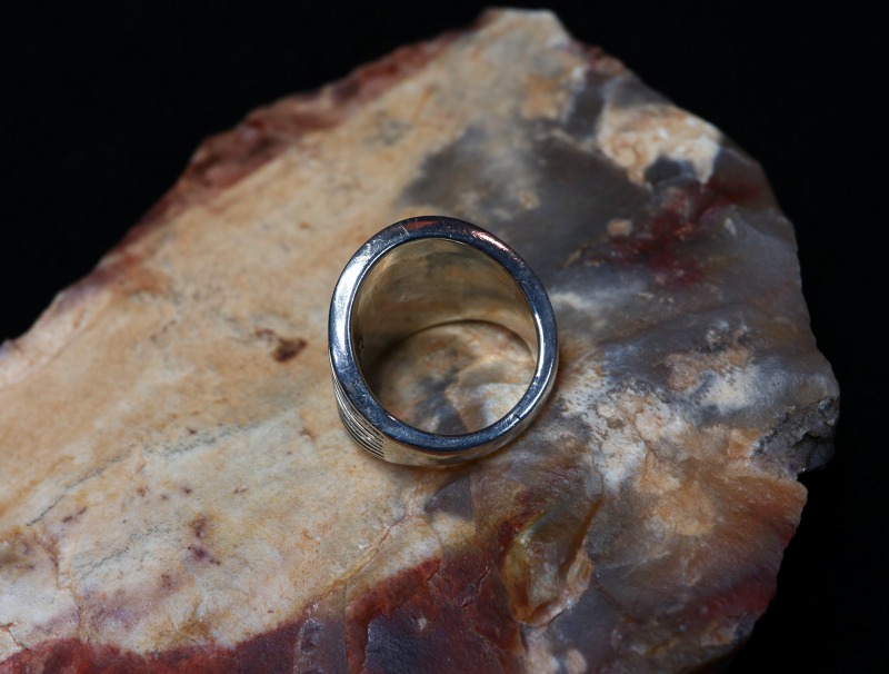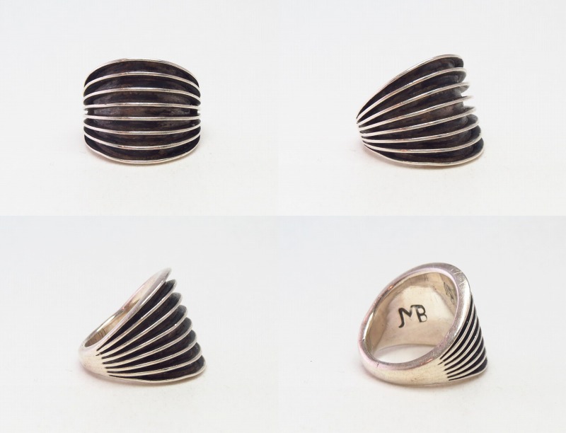 1960年代と言うモダンスタイル黎明期のピースであり、クリーンでエッジーな表情はエレガントでシックな印象ですが、製作工程や技術はナバホのオールドスタイルを踏襲しており、力強くナバホ独特の骨太なイメージも併せ持ったリングです。