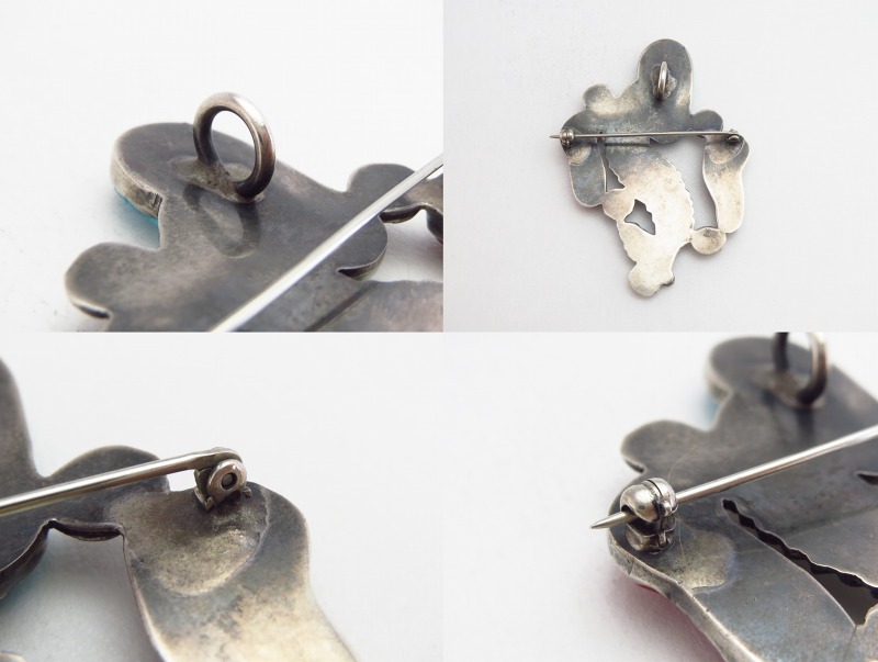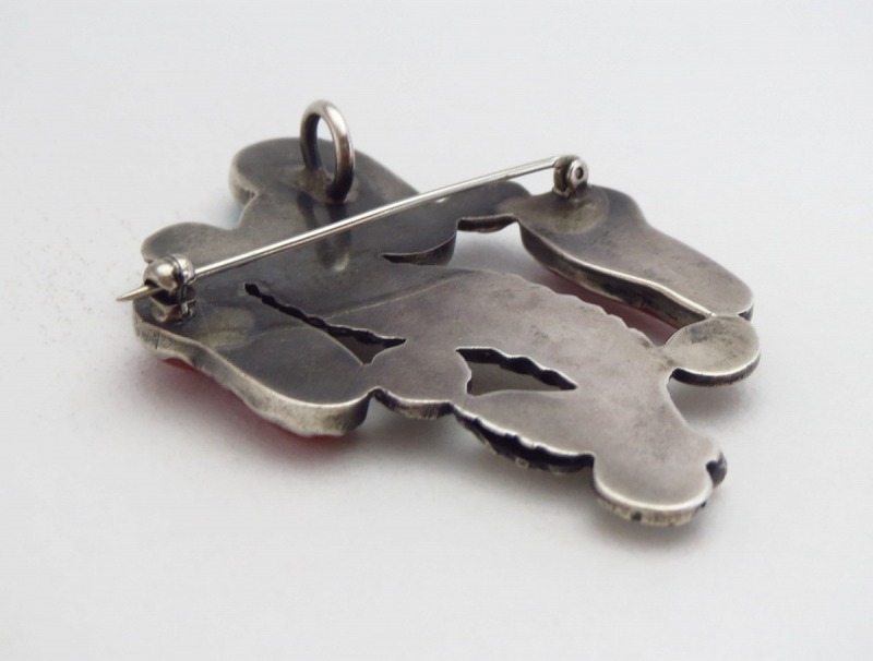 【ZUNI】ズ二の偉大な作家【Dan Simplicio】ダン・シンプリシオ(1917-1969)によって制作されたと思われる作品。ナチュラルなシェイプが活かされた大変美しいレッドコーラル(珊瑚)がメインに構成された同作者の代表的な造形スタイルを持つピースで、ピンブローチとしてもペンダントトップとしても使用可能な作品となっています。
