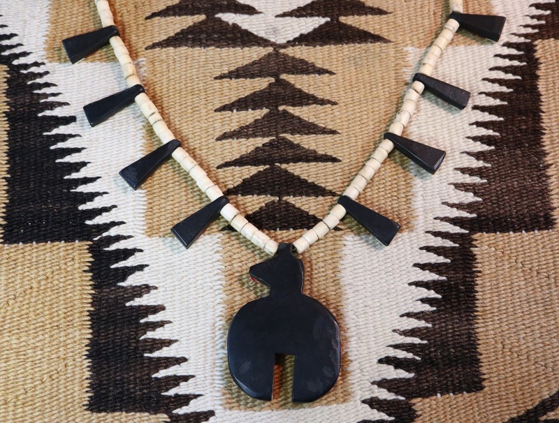 また、ナバホやホピ、ズニのジュエリーとも相性が良く、スタイルのアクセントとして効果的なネックレスです。