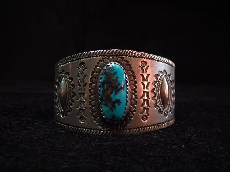 【Austin Wilson】オースティン・ウィルソンと【Ike Wilson】アイク・ウィルソン(1901-1942)は、ナバホ族の兄弟とされ、二人とも1901年生まれ、一説にはアングロ/白人の血が入っていたのではないかとされています。インディアンジュエリー作家の第二世代、セカンドジェネレーションと呼ばれる【Fred Peshlakai】フレッド・ぺシュラカイ(1896-1974)や【David Taliman】デビッド・タリマン(1902or1901-1967)、 ホピの【Morris Robinson】モリス・ロビンソン(1901-1984)、等と同世代であり、インディアンジュエリーの『作家』として活動を始めた最初期の一人です。