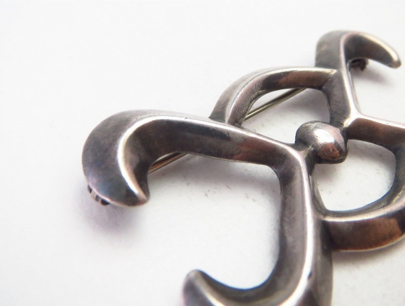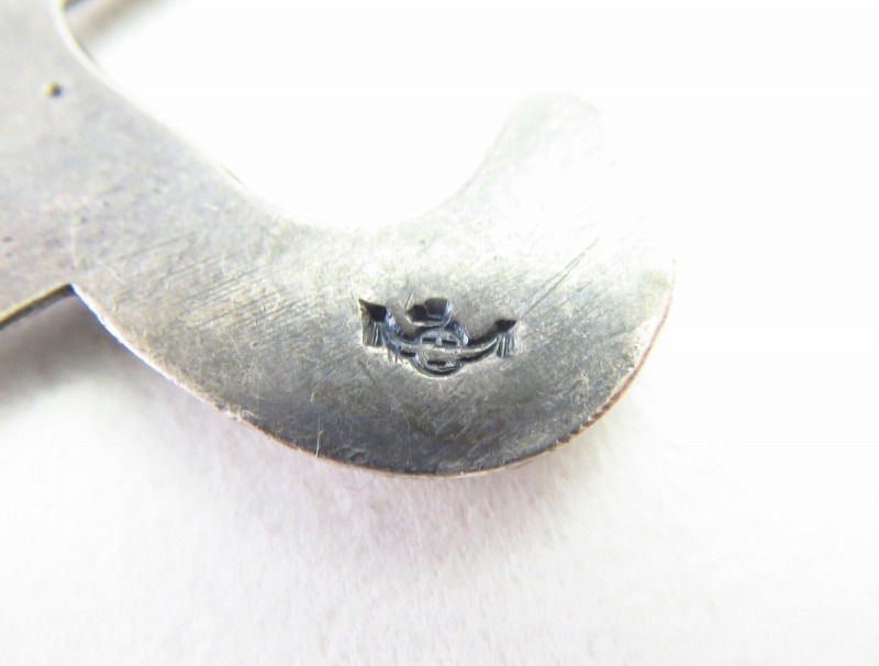 こちらの作品も前述のホールマーク 【Horned Moon/Horned Sun】が刻印されており、作者個人を特定することはできませんが、非常にナバホギルドらしいシンプルで洗練された造形のピンブローチです。