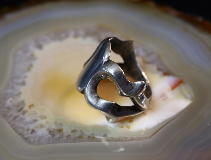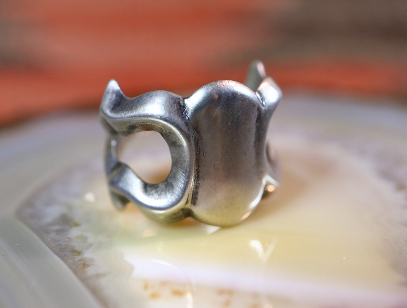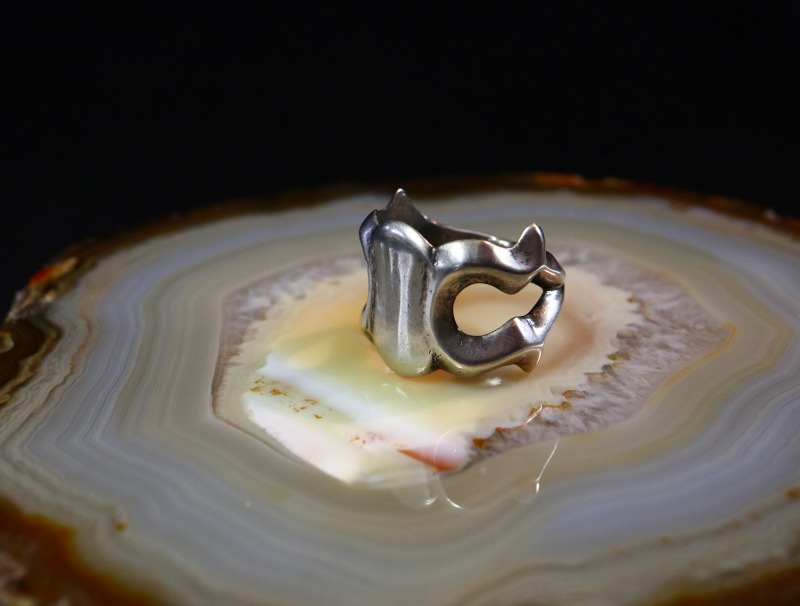 ナバホジュエリーらしいデザイン/造形を持った作品であり、シルバーのみで仕上げられたソリッドな質感やシンプルで武骨な印象は汎用性が高く、性別やスタイルを問わず馴染みやすく長くご愛用いただけるリングとなっています。