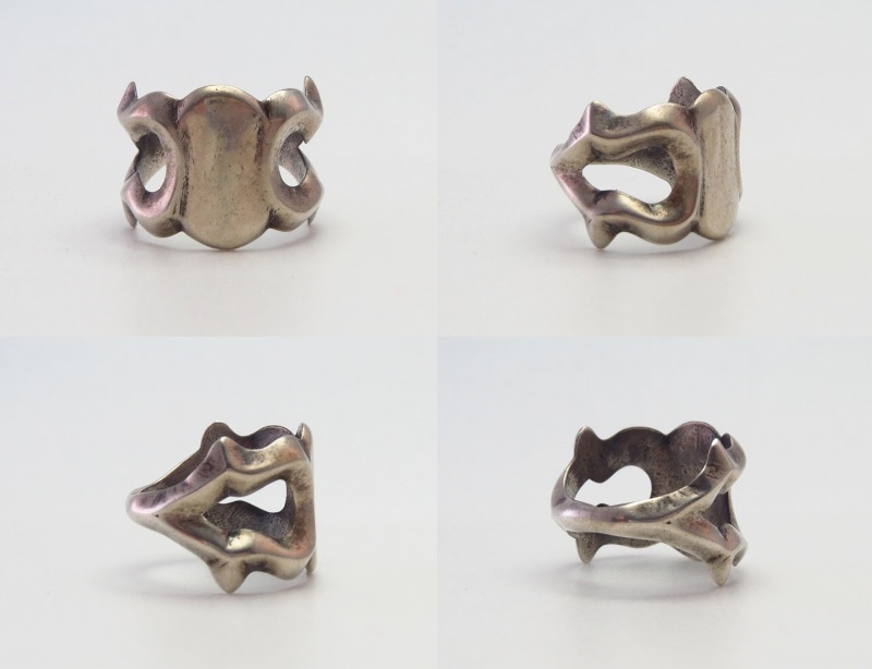 また、こちらはホールマーク等の刻印がなく作者等を特定することはできませんが、本作が作られた年代と同時期に【The Navajo Arts & Crafts Guild】通称ナバホギルドの残した作品にもフェイスがブランクになったデザインのサンドキャスト成形されたリングが発見されており、ナバホギルドで作られた作品や、同組織に所属した経験を持つシルバースミスによって制作された可能性も考えられる作品です。