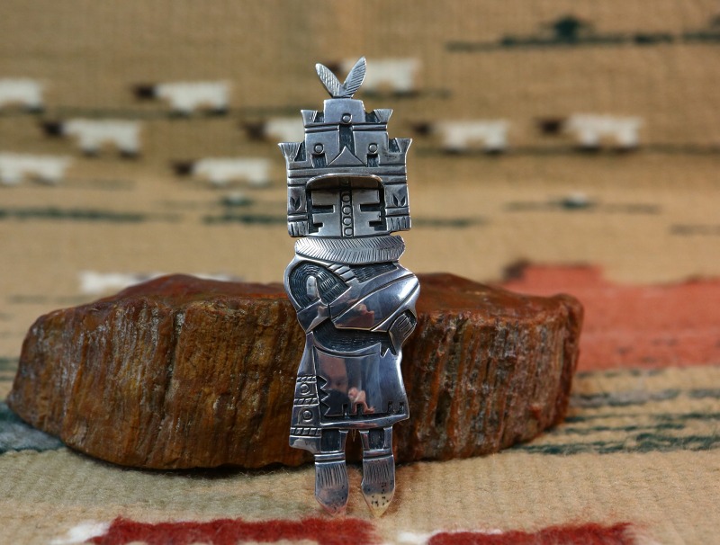 本作の様なカチナをモチーフとしたジュエリー作品やカチナドールはコレクタブルな工芸品、精霊をかたどった人形というだけでなく、ホピ族の継承する思想やメッセージ、祈りを具現化した神聖な化身でもあります。
