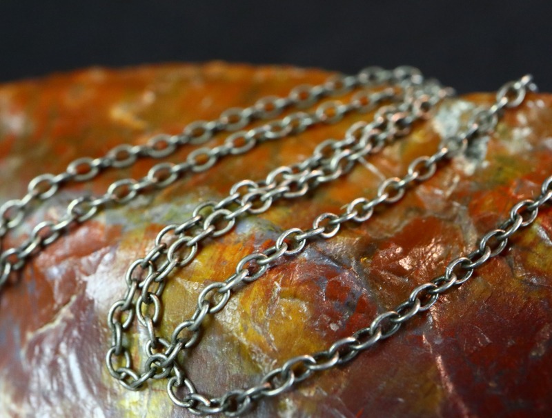 シルバーチェーンは、オリジナルの時代よりも少し新しい年代のものと推測されますが、重厚な質感を持ったスターリングシルバー製で、ビンテージ作品によく馴染む表情になっています。