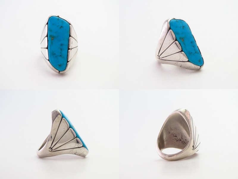 本作はSam Begayの代表的なデザイン/造形を持つ作品であり、際立った美しさを持つターコイズとクリーンででミニマルなシルバーワークによって品位と迫力を併せ持ったリングとなっています。