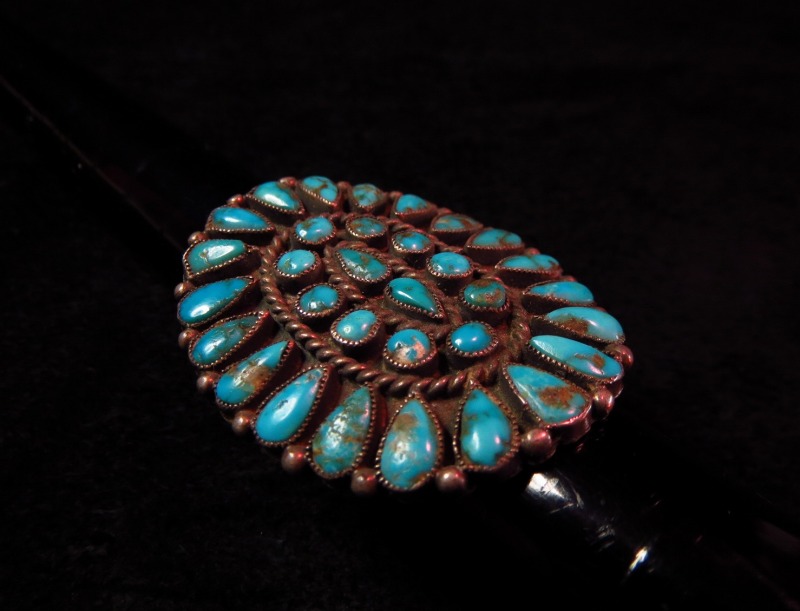 ターコイズも非常にクオリティーが高く、クラスターデザインは現在でもほとんど変わらずに受け継がれていますが、古い作品でしか見られない素晴らしいターコイズが使われています。