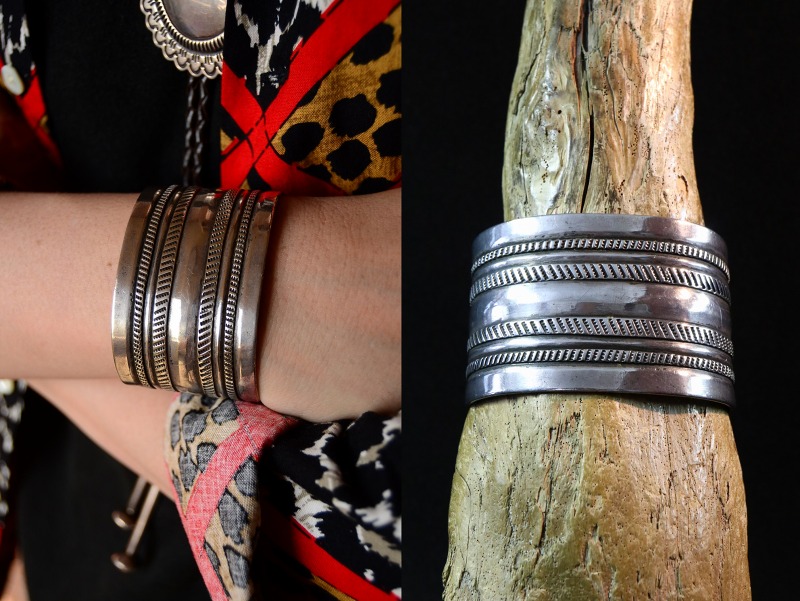 また、幅が広く男性的で際立った存在感を持つバングルですが、石が付かないため派手さは無く、有機的な表情や洗練された印象はナチュラルで多くのスタイルに馴染みやすい印象を持っており、長くご愛用頂けると思われます。