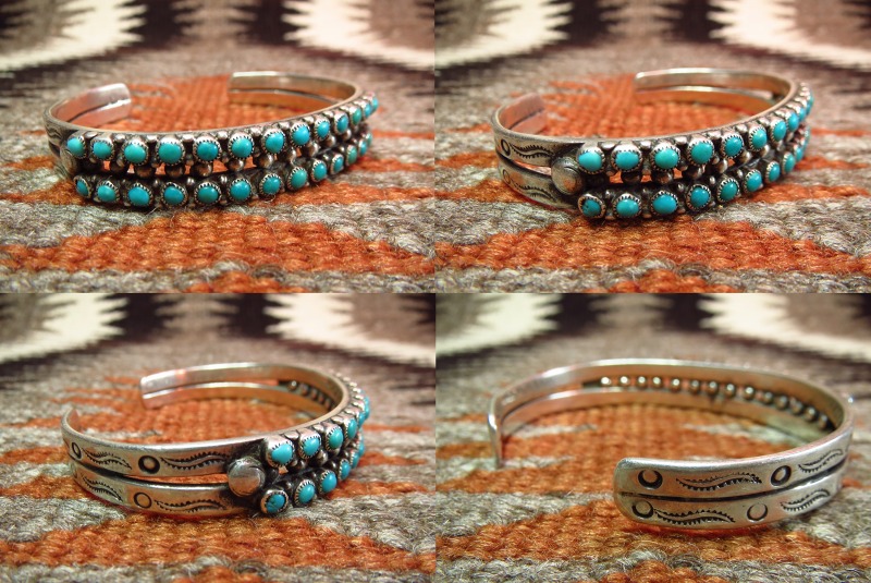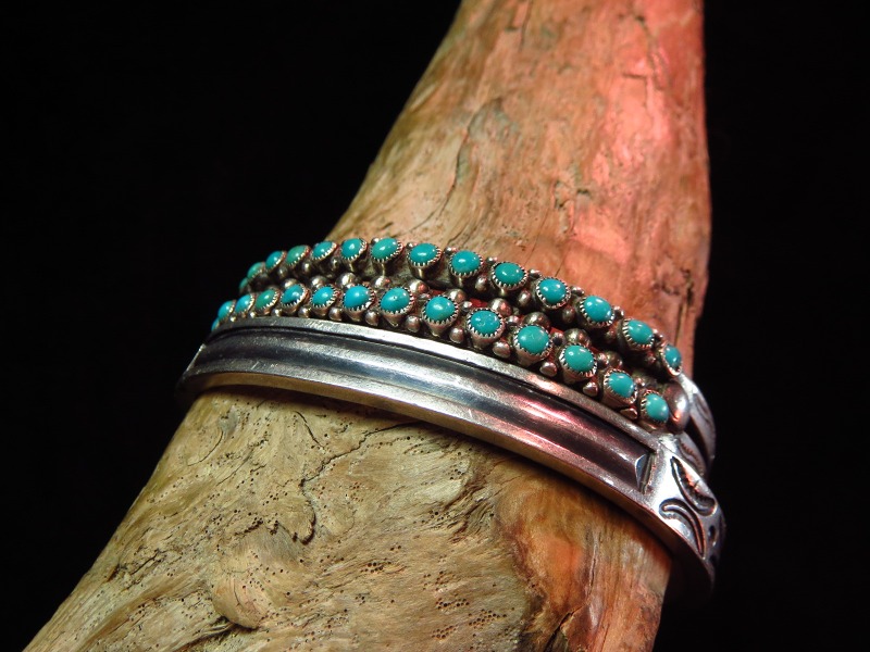 【ZUNI】ズニ族の作品で2連になったローワーク、ビンテージバングルです。