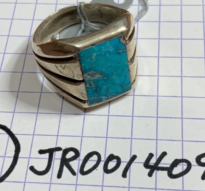 Vtg Navajo Cast Silver Men's Ring w/Sq. Turquoise c.1965~
