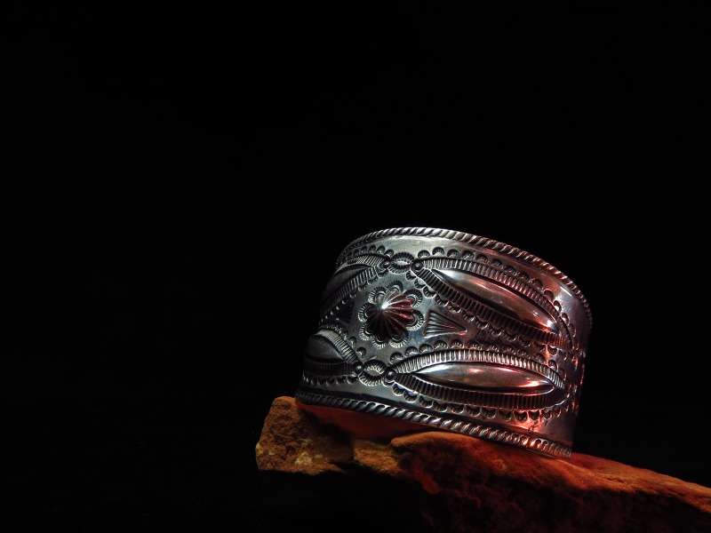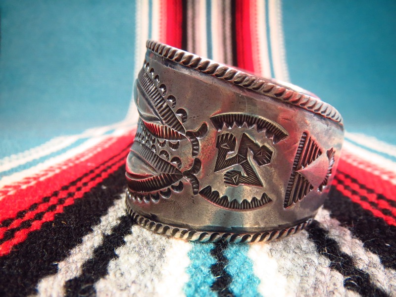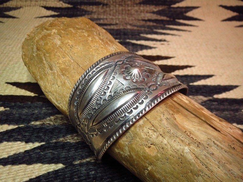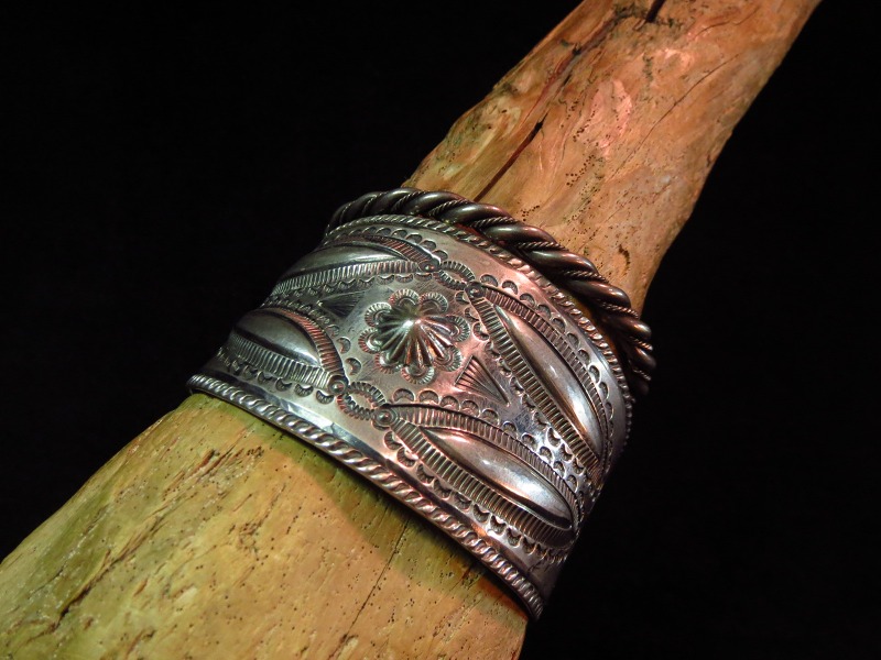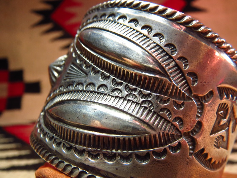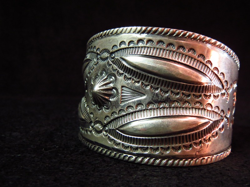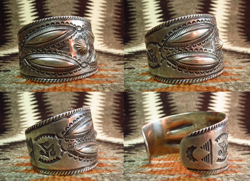 ナバホの1910年代後半~20年代製と思われるインゴットシルバーから作られた幅のあるビンテージシルバーバングルです。