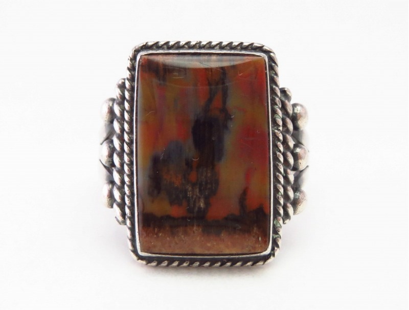 【NAVAJO】ナバホのビンテージジュエリー、オーセンティックでとても質の高いシルバーワークをベースに、美しいスクエアカット【Petrifiedwood】ペトリファイドウッド(木の化石)がマウントされたメンズサイズのアンティーク/ビンテージリングです。