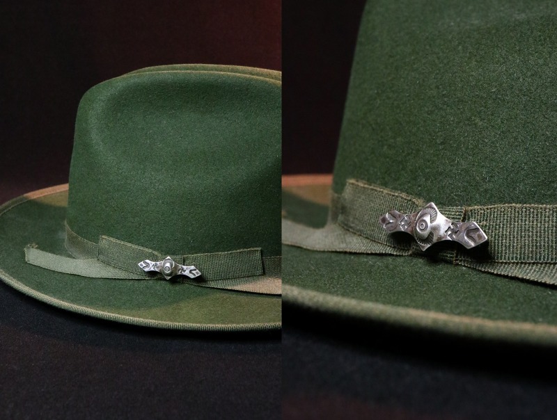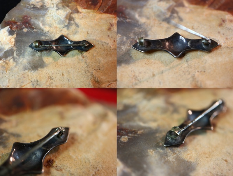 そして、独特の奥行きと渋い質感は、多くのアイテムに良く馴染むピンブローチであり、小さなサイズ感やアンティークインディアンジュエリーらしいモチーフは、アウターのアクセントとしてラペルや襟等にもフィットしますし、ハット等のワンポイント等にも大変使い勝手の良いピースです。