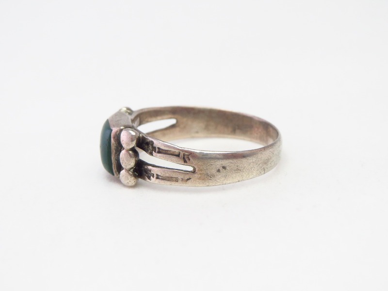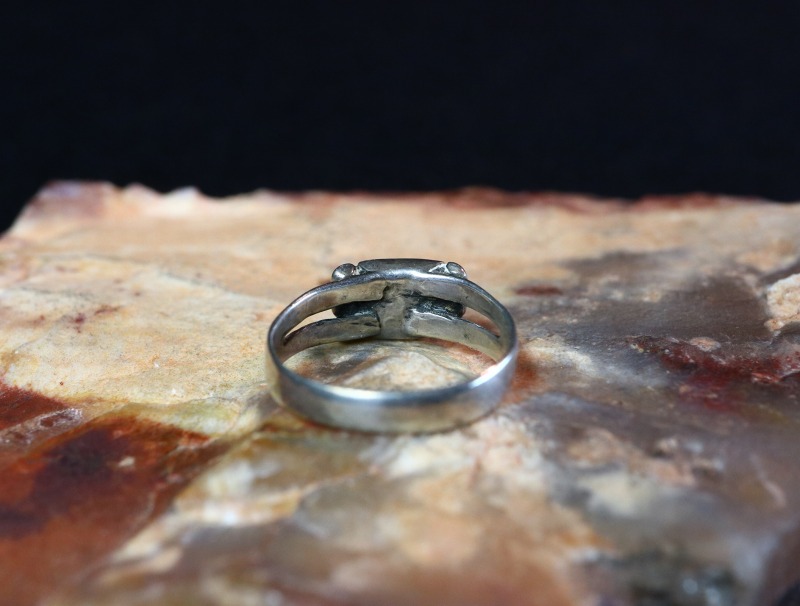 コンディションの良いピースではなく、経年と相当な使用感を感じさせる状態ですが、堅牢なシルバーワークによってしっかりとした完成度に仕上げられた作品のため、現在のような状態でも着用に不安のない状態を保ち、特別な魅力を持ったリングとなっています。