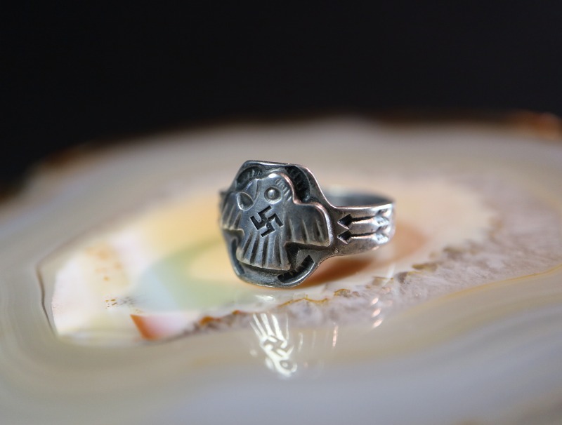 また、アイコニックなサンダーバードや卍の印象は、男性向けのアクセサリーには重要な要素である『ギャップ』と『遊び心』を与えてくれるアイテムであり、さり気なくスタイルに奥行きをもたらすことが出来るビンテージリングです。