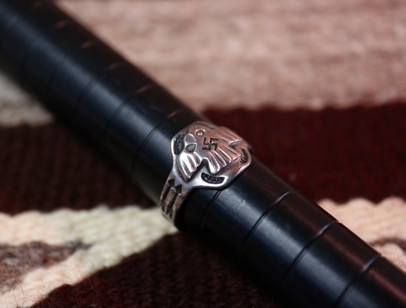 しかしながら、1933年のナチスドイツ出現、1939年にWW2開戦によりアメリカにおいては敵国ドイツのハーケンクロイツと同一記号は不吉だとして使われなくなってしまいました。 当時の新聞記事にも残っていますが、インディアンたちにも卍が入った作品の廃棄が求められ、政府機関によって回収されたりしたようです。 その後、大戦中にも多くが廃棄されてしまった歴史があり、現存しているものは大変貴重となりました。
