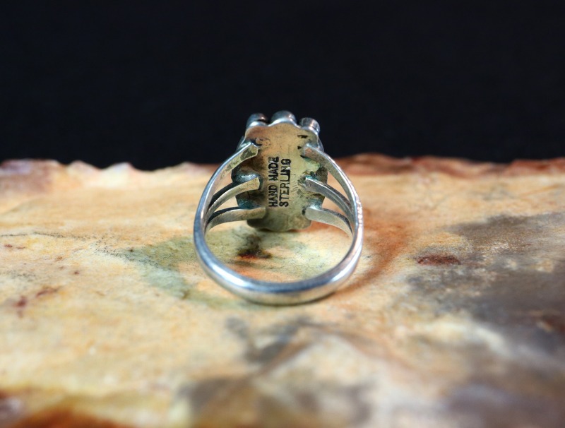 内側には925シルバー製であることを表す『STERLING』と共に『HAND MADE』の刻印が施されています。この『HAND MADE』のスタンプにより、1930年代後半~1950年代に、アメリカ中西部に誕生した多くのインディアンジュエリーショップの中でもいくつかのショップ/工房が推測されます。