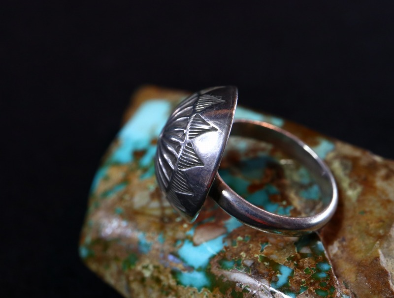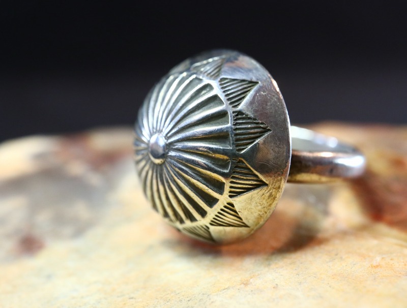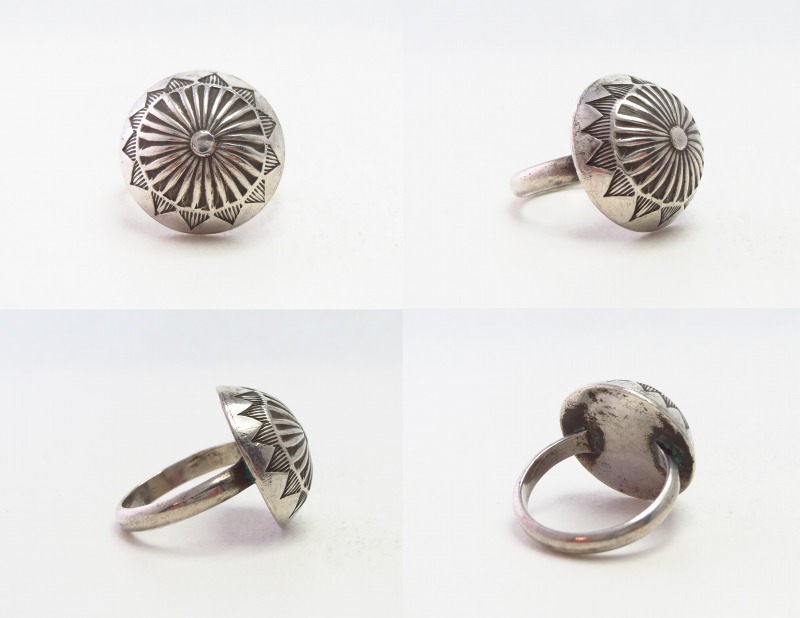 また、シルバービーズの球体や本作の様な半球体のコンチョは『ナバホパール』や『デザートパール』とも呼ばれ、インディアンによる『パールリング/真珠の指輪』と云えるスペシャリティを持ったリングとなっています。