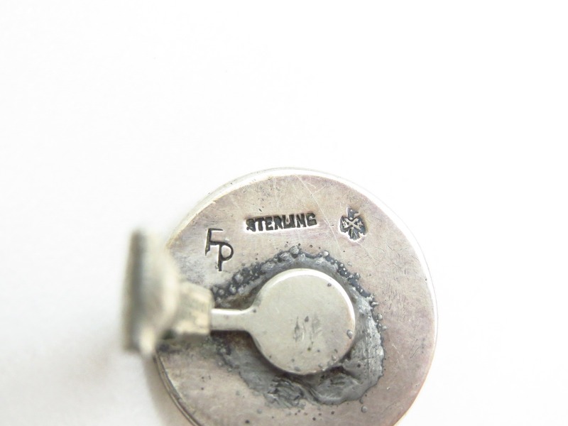 また、本作の内側には【Thunderbird Shop】を表すサンダーバードとSterling Silver=925シルバー製であることを表す『STERLING』のスタンプ、それにFrank Pataniaのパーソナルなホールマーク『FP』が刻印されており、Frank Patania本人によって制作された可能性もあります。