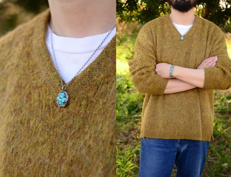 独自性も持った作品ですがクラシックで普遍的な造形美があり、素朴ながら特別なクオリティを有するターコイズナゲットにより、唯一無二の魅力を持つネックレスとなっています。