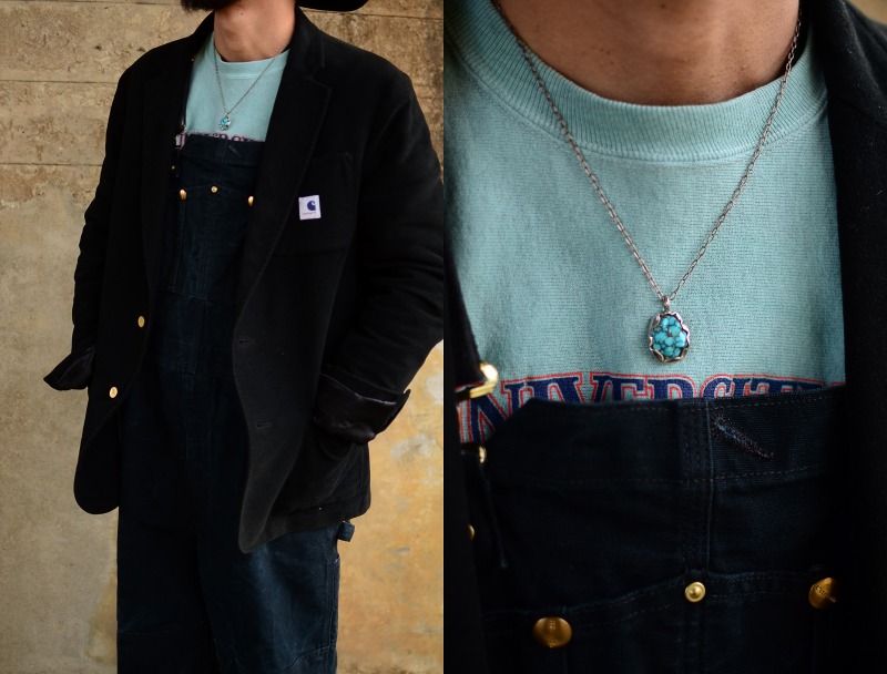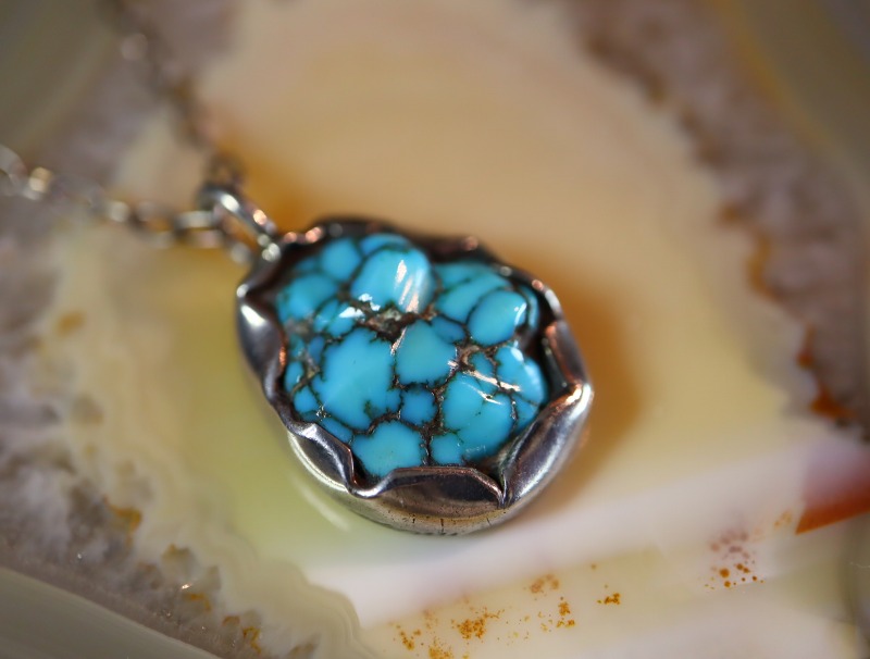 大きな石ではありませんが、非常に高く評価されるターコイズをメインに構成したピースであり、宝石としての美しさだけでなく、自然や大地を身に着けるような感覚を覚える作品。