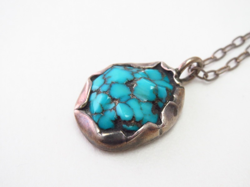 ターコイズも長い時間の経過を感じさせないコンディションを保っています。マトリックス部分には凹凸が見られますが、それらはカットされた時からの天然石が持つ凹凸であり、クラックなどのダメージではありません。