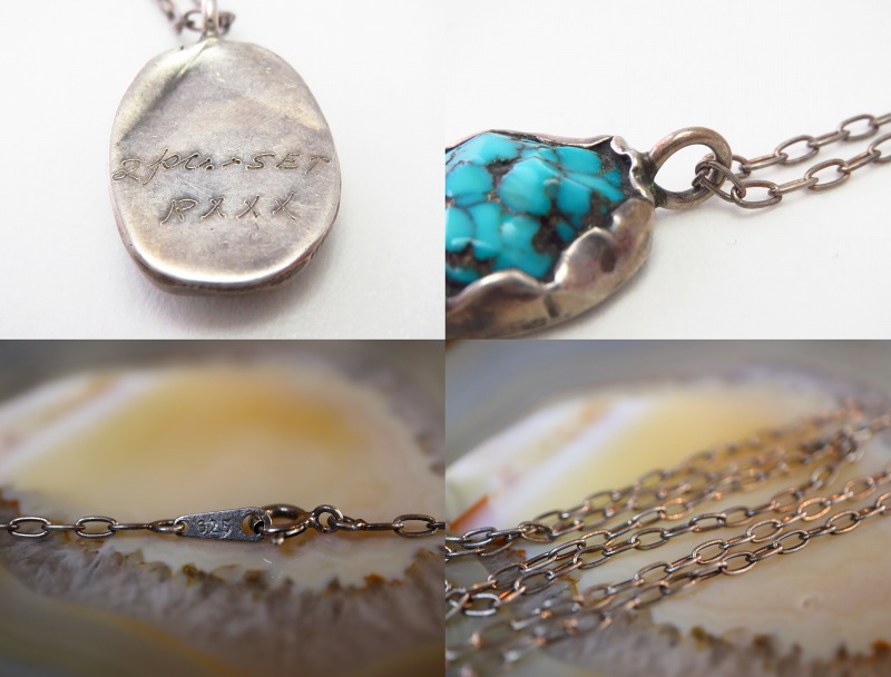 付属のシルバーチェーンは新しいものですが太さがあり重厚な925シルバー製で、独自にアンティーク加工を施しており、ビンテージ作品によく馴染む表情となっております。