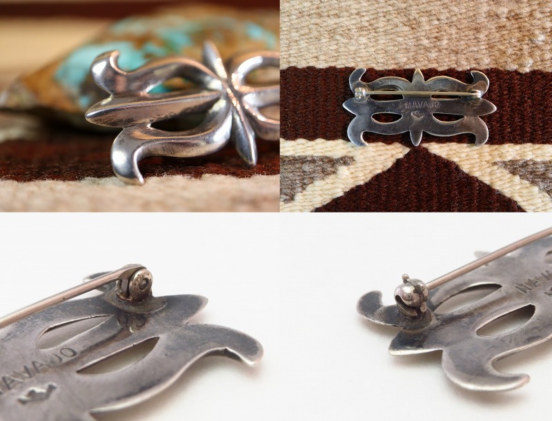 こちらの作品も前述のホールマーク 【Horned Moon/Horned Sun】が刻印されており、作者個人を特定することはできませんが、非常にナバホギルドらしいシンプルで洗練された造形のピンブローチです。