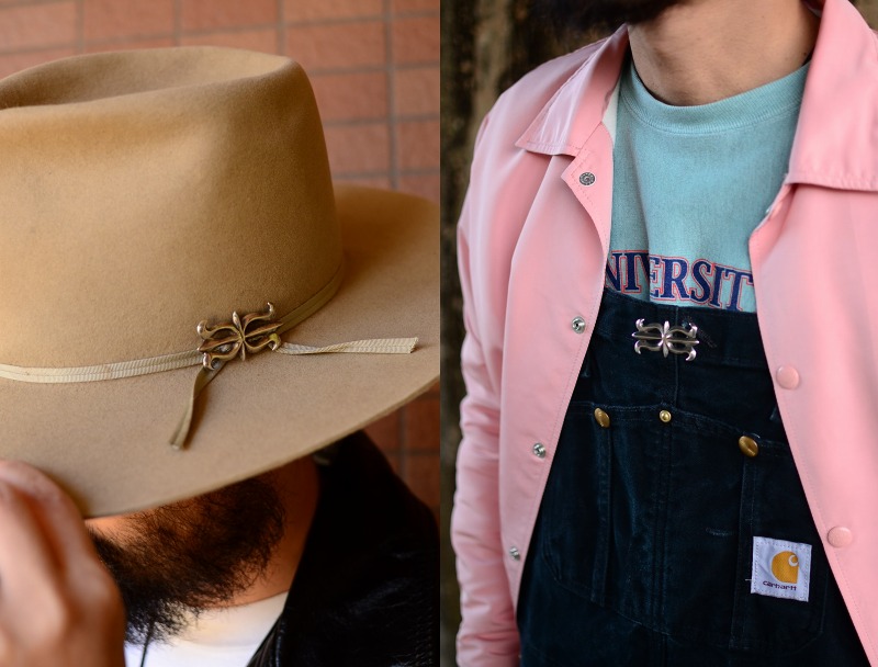 また本作では、丁寧なシルバーワークと卓越した立体造形センスによって、シンプルながら現代作品にはない威厳のある表情が与えられています。さらに、シルバーのみで構成されたソリッドな印象や控えめなサイズ感、クラシックでオーセンティックなシェイプは多くのアイテムにさり気なく馴染み、使いやすいピンブローチとなっています。ラペルやハット以外にも多くのアイテムに馴染みの良いシンプルな作品で、日常のスタイルにおいてとても良いアクセントになってくれるアイテムです。