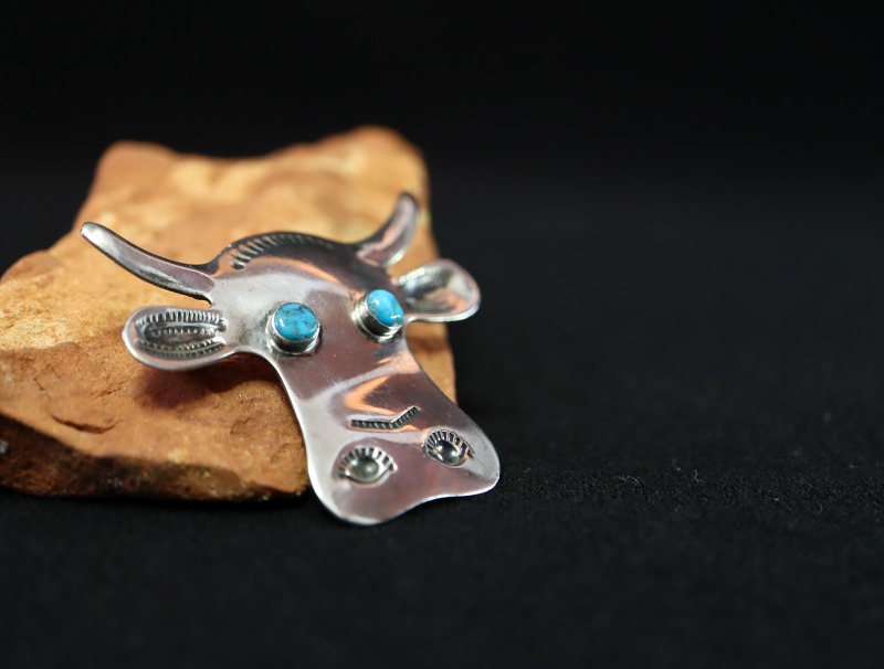 こちらのようなCow/牛がモチーフになった作品はナバホのアンティーク作品で古くから確認されていますが、制作された数は少なくほとんど現存していません。しかしながら、VAUGHN'S INDIAN STOREではいくつか制作されているようです。