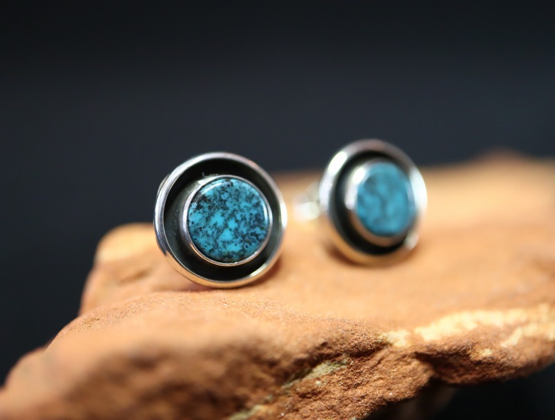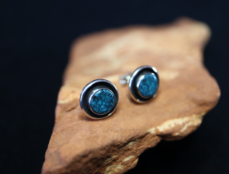 こちらのピアスは、一見してインディアンジュエリーと判断できない程にシンプルでクリーンな印象のデザインとなっていますが、石の味わいからはアーシーな魅力を感じ、そのナチュラルな表情は性別を問わずフィット印象です。また、控えめなサイズとシンプルなデザインは男性にも馴染みやすく、女性のスタイルにもさり気なくも奥行きを与えるアクセントになり得るピアスです。