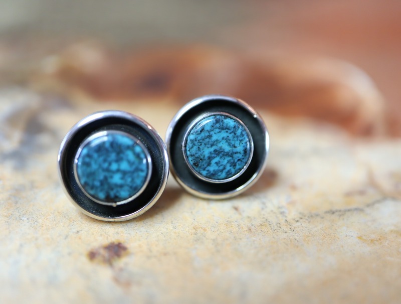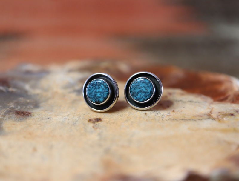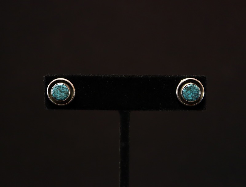 【NAVAJO】ナバホか【PUEBLO】プエブロのビンテージジュエリー、綺麗なラウンドカットターコイズがメインに構成されたピースで、非常にシンプルでデザインながらクリーンで上質感のあるオールド/ビンテージピアスです。