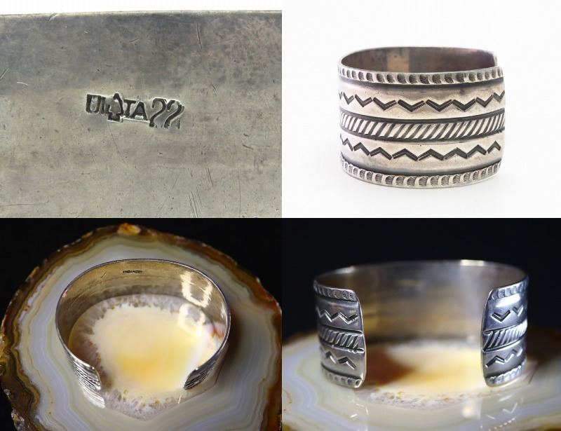 その作品群は多岐にわたり、プエブロの作品を想起させるシンプルなブレスレットから、ツーリストスタイルのピンブローチ等も多く見られます。また、多くのシルバースミスが所属していたと推測され、その作者を特定することは出来ませんが、本作の様に素晴らしいクオリティーを持つ作品が多く残されており、UITAの刻印が入ると云うことは、その製法や材料等について厳しい条件をクリアしていることを表しています。